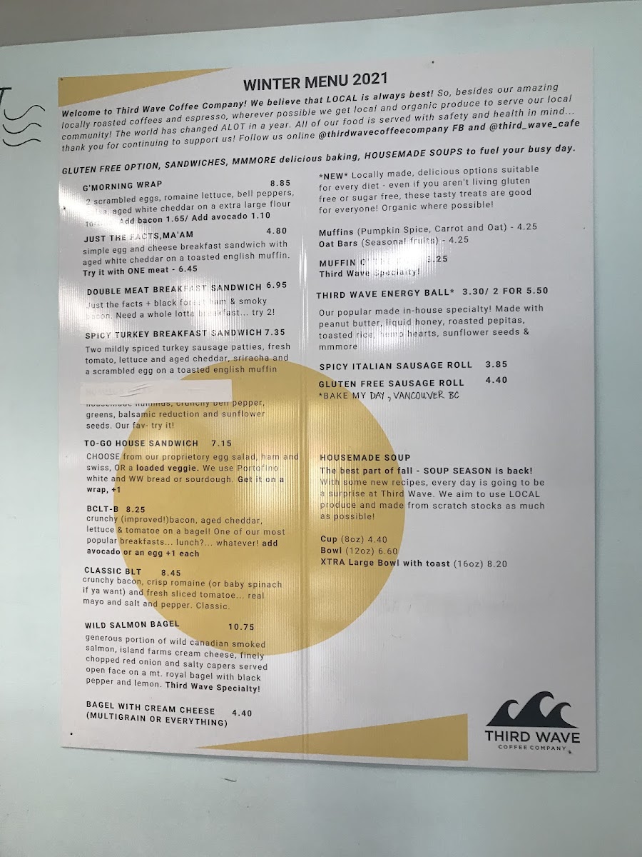 Third Wave Coffee Company Menu